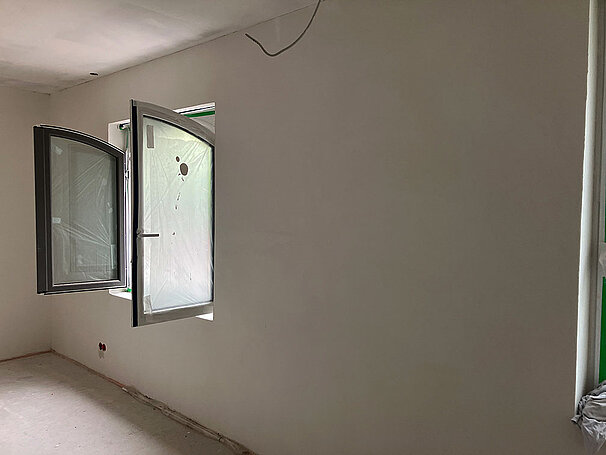 Anbringen des HECK INNEO Innendämmsystems in einem Einfamilienhaus auf 3 Stockwerke mit anschließender Verspachtelung mit Rajasil KG